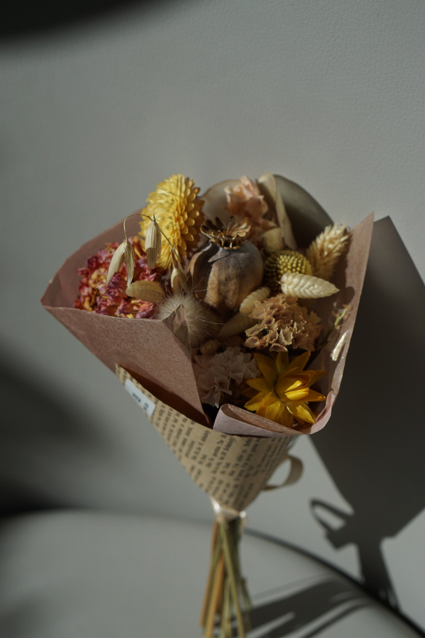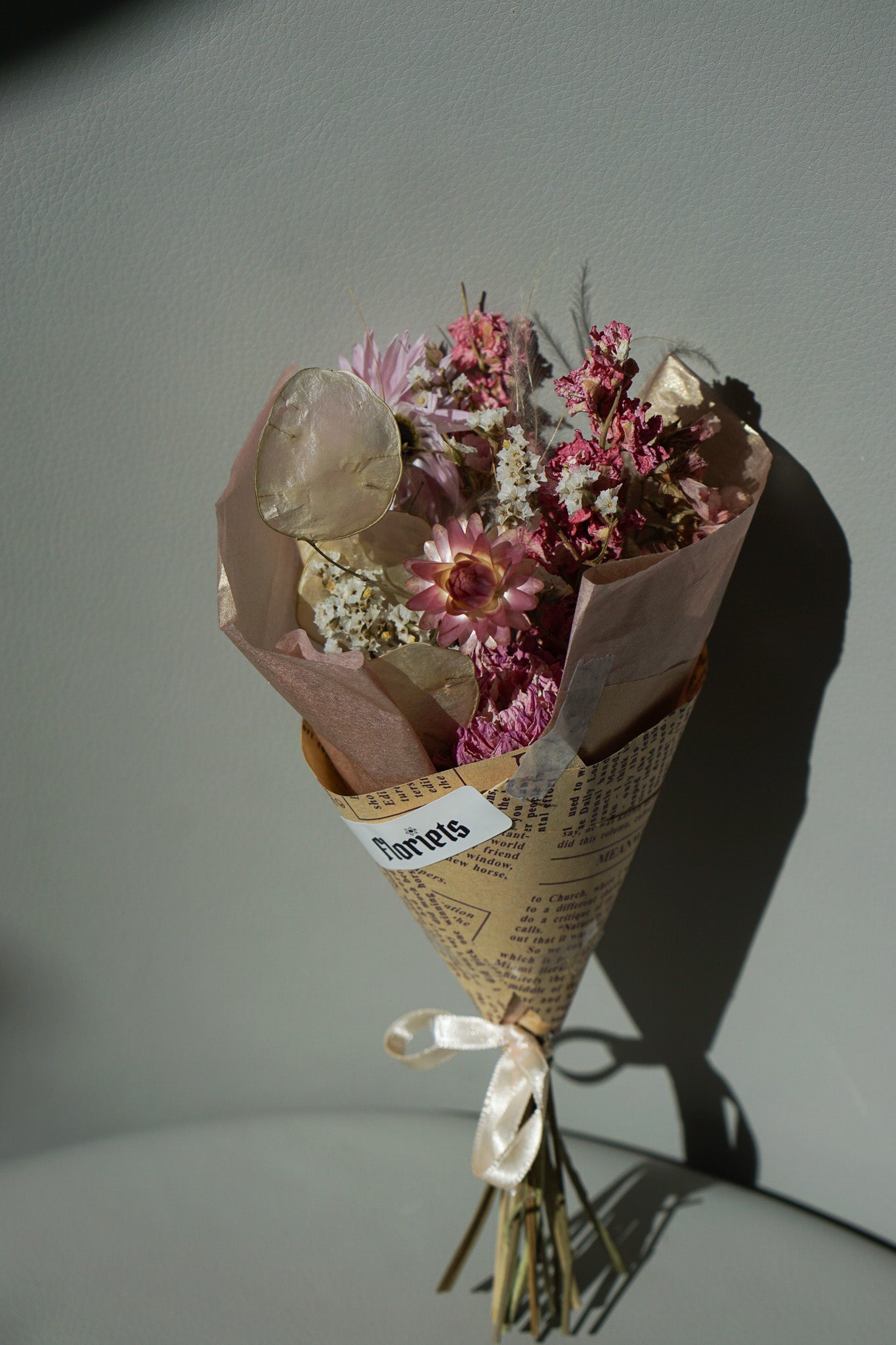 A gorgeous little bunch of dried flowers ready to gift or display.