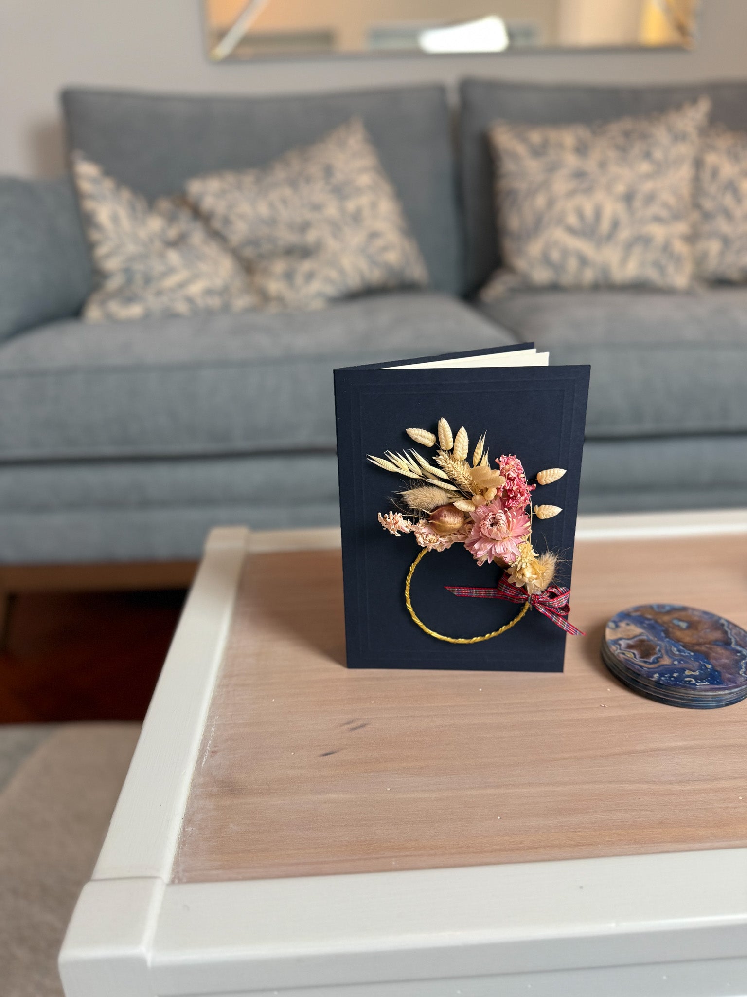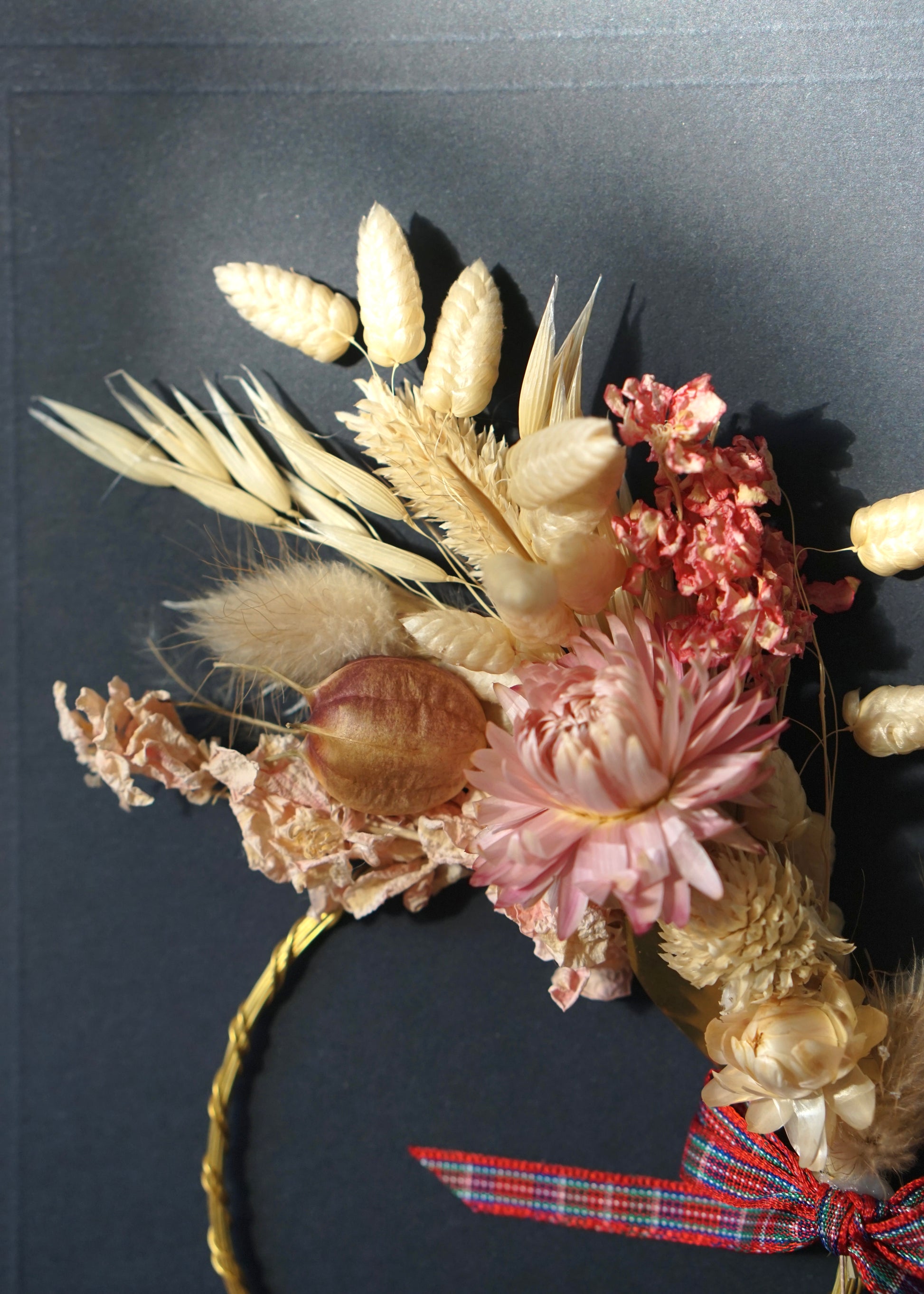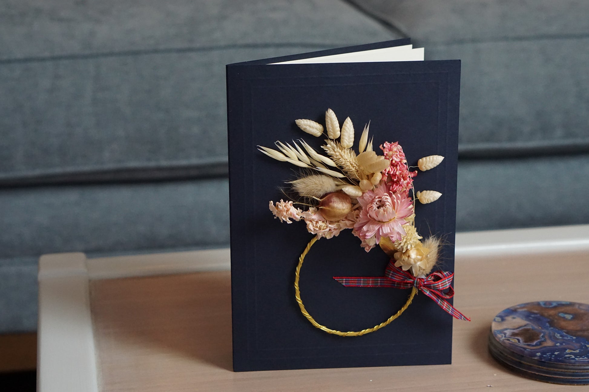 Large A5 Handmade Dried Flower Wreath Greeting Card - Pink Strawflower - Boxed