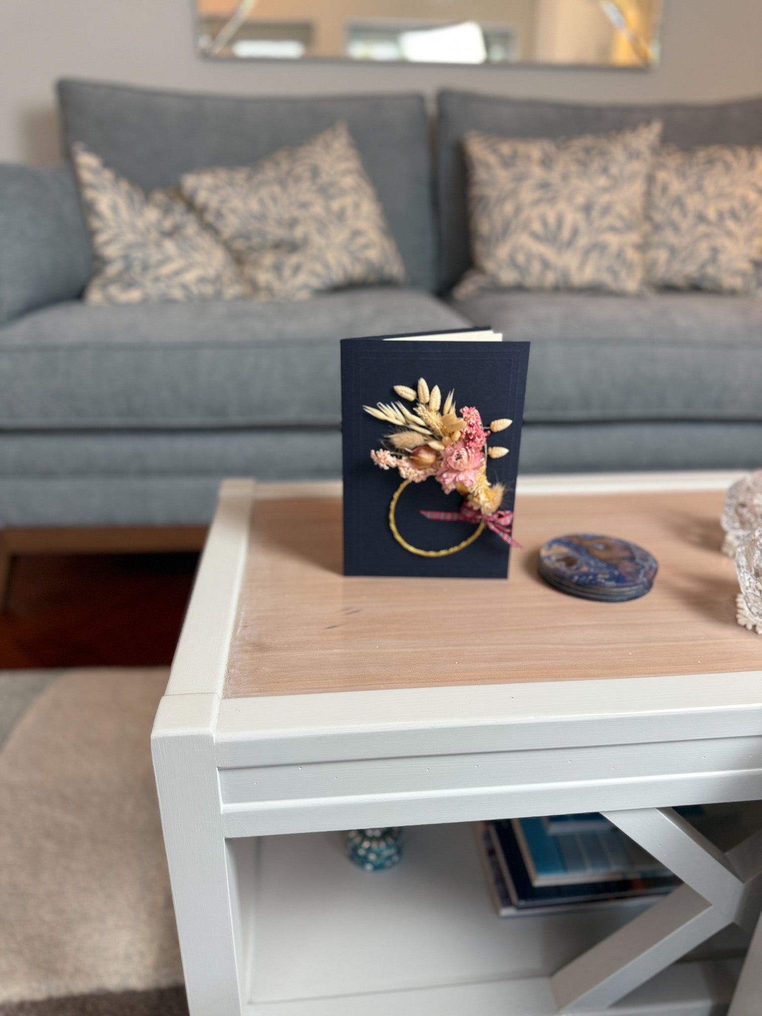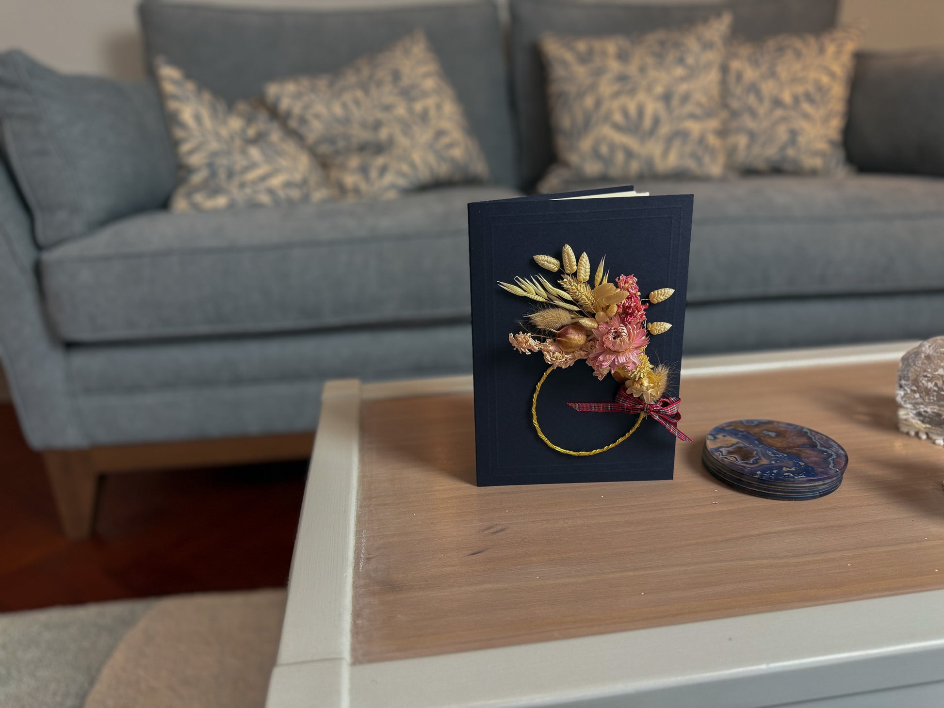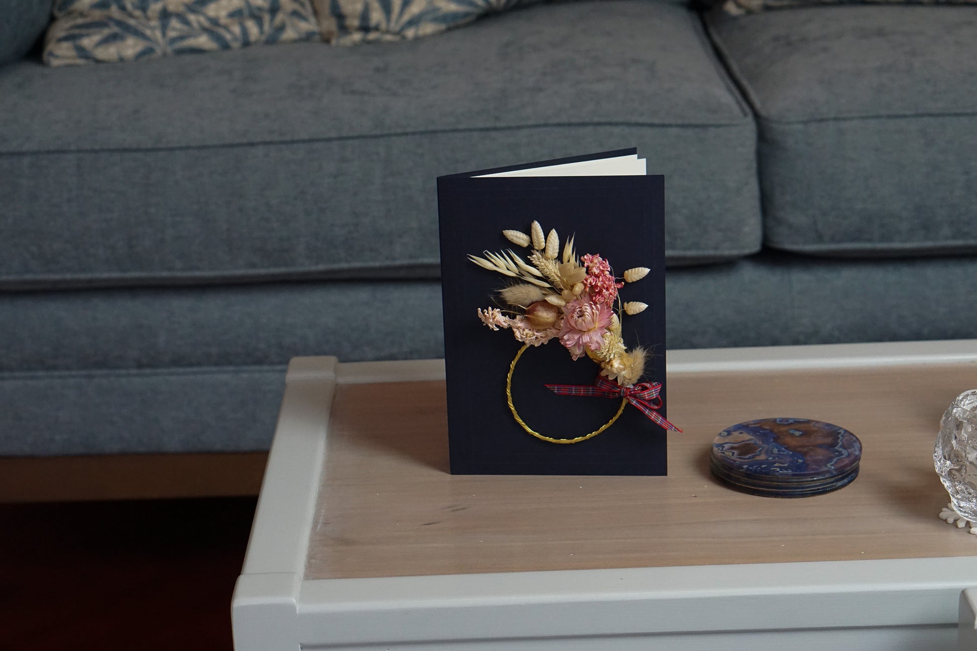 Large A5 Handmade Dried Flower Wreath Greeting Card - Pink Strawflower - Boxed