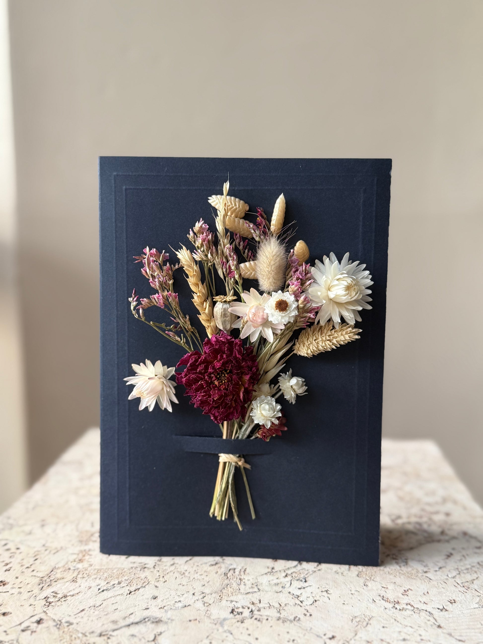 Large Handmade Dried Flower Bouquet Greeting Card - Navy